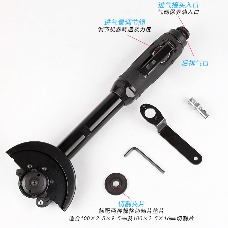 • 產(chǎn)品參數(shù): 砂輪尺寸:100×2.5×10mm,100×2.5×16mm; 砂輪孔徑:10和16mm; 空載轉(zhuǎn)速:13000rpm; 外形尺寸:50×370mm; 工具重量:1.45kg; 馬達功率:1HP; 耗氣量:0.5立方米/分鐘; 使用工作氣壓:0.65Mpa; 推薦使用內(nèi)徑8mm氣管; 平時使用應(yīng)多加氣動油保養(yǎng)