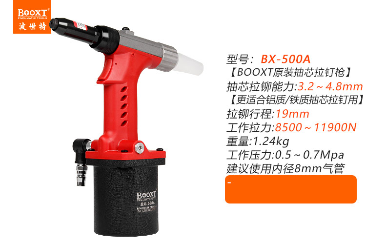 東莞市強勁五金工具有限公司提供臺灣BOOXT波世特品牌氣動工具,新款氣動拉釘槍BX-500A廠家直銷,首件享特價。咨詢熱線:4008301980