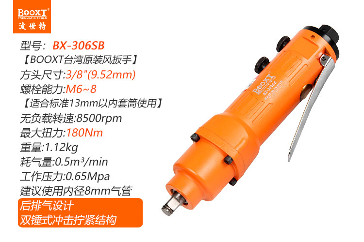 東莞市強(qiáng)勁五金工具有限公司提供臺灣BOOXT波世特品牌氣動工具,直型氣動扳手BX-306SB廠家直銷,首件享特價(jià)。咨詢熱線:4008301980