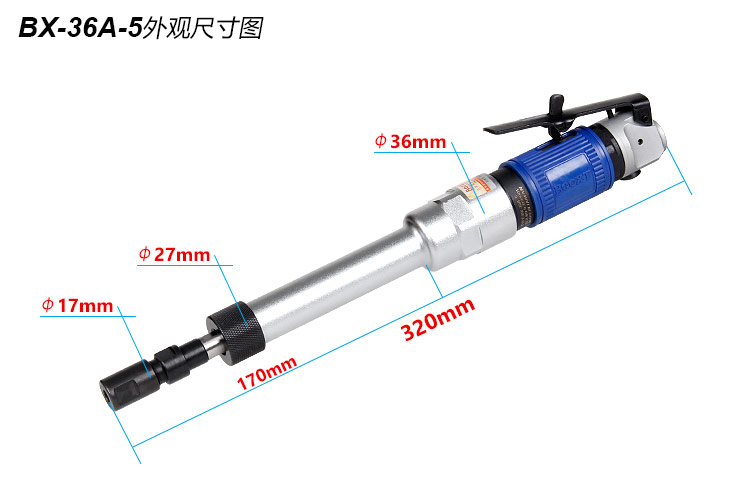 長(zhǎng)桿氣動(dòng)打磨機(jī)特點(diǎn):(加長(zhǎng)桿設(shè)計(jì),更適合狹窄,深孔,細(xì)孔空間作業(yè))