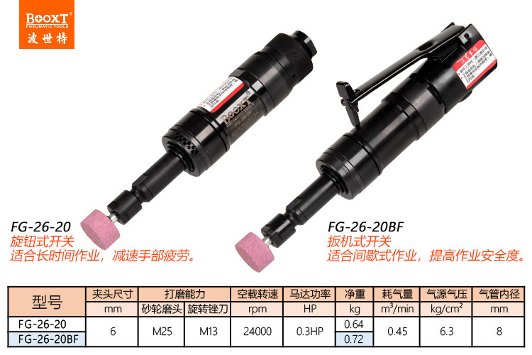 東莞市強(qiáng)勁五金工具有限公司提供臺(tái)灣BOOXT波世特品牌氣動(dòng)工具,風(fēng)磨機(jī)FG-26-20廠家直銷(xiāo),首件享特價(jià)。咨詢熱線:4008301980