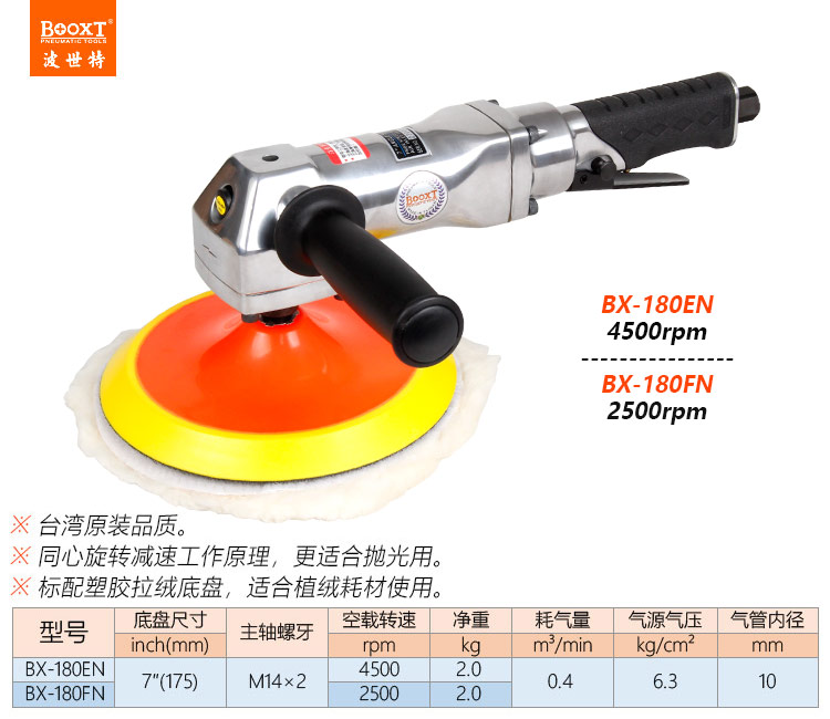 東莞強勁五金工具有限公司提供臺灣BOOXT波世特氣動工具,打蠟氣動拋光機BX-180FN廠家直銷,首件享特價。咨詢熱線:4008301980