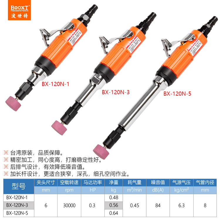 東莞市強(qiáng)勁五金工具有限公司提供臺(tái)灣BOOXT波世特品牌氣動(dòng)工具,加長(zhǎng)氣動(dòng)直磨機(jī)BX-120N-3廠家直銷(xiāo),首件享特價(jià)。咨詢(xún)熱線(xiàn):4008301980