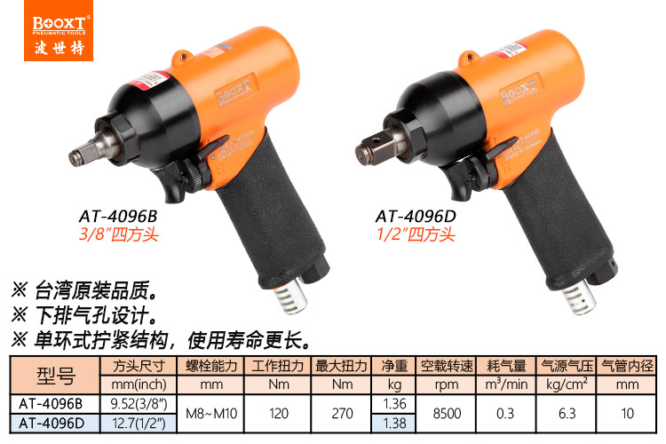 東莞市強勁五金工具有限公司提供臺灣BOOXT波世特品牌氣動工具,氣動沖擊扳手AT-4096D廠家直銷,首件享特價。咨詢熱線:4008301980
