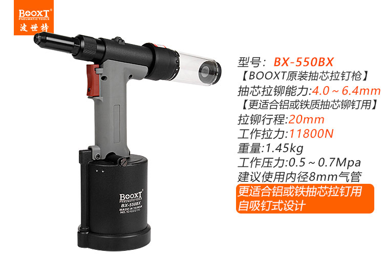 東莞市強(qiáng)勁五金工具有限公司提供臺灣BOOXT波世特品牌氣動工具,自吸氣動鉚釘槍BX-550BX廠家直銷,首件享特價(jià)。咨詢熱線:4008301980